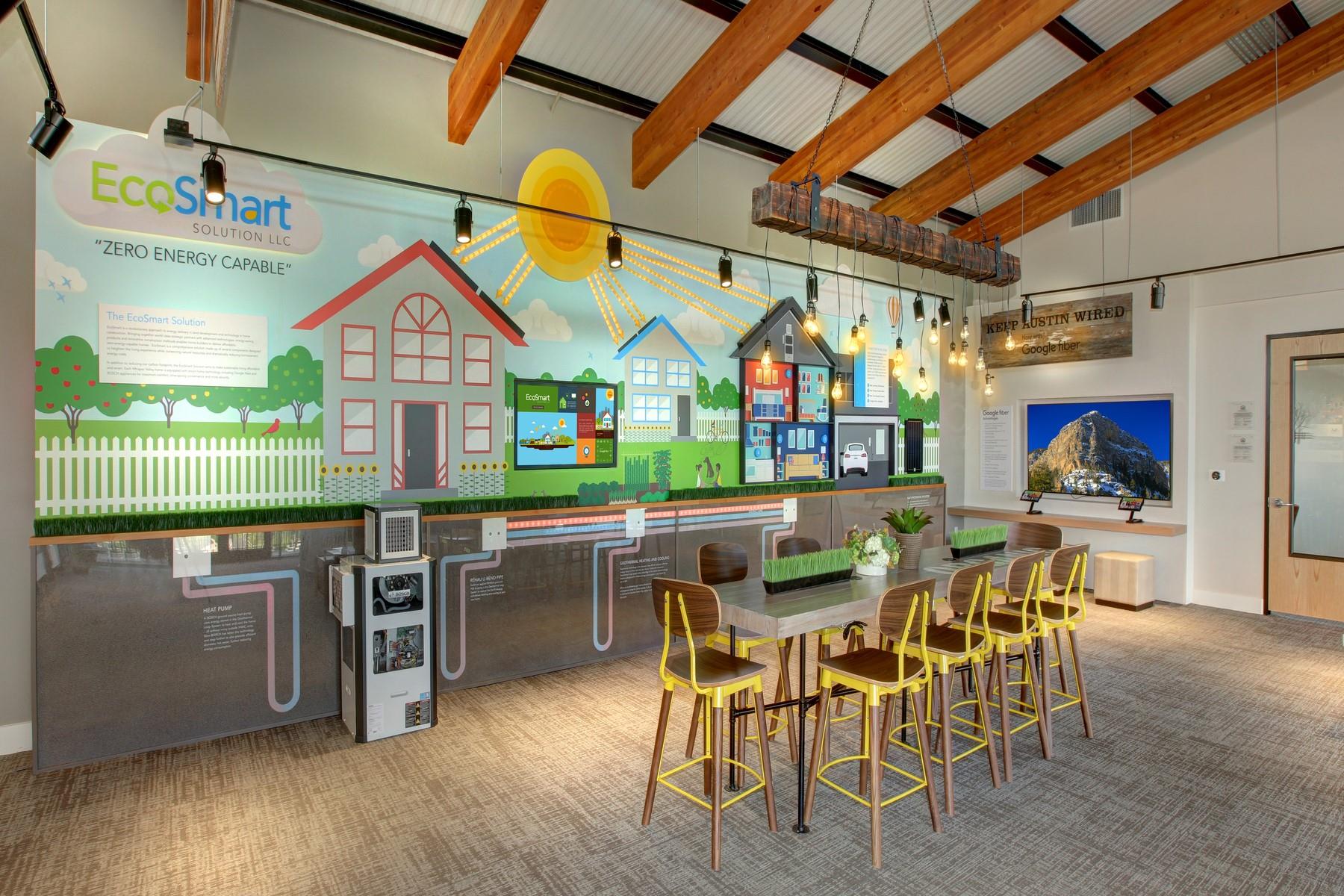 Step into this fantastic two-story home in the environmentally conscious community of Whisper Valley, where every corner is brimming with charm and style. Located on one of our unique flag lots this home offers a wrought iron fenced front yard and easy access to one of the communities conveniently located pocket parks. On the main level, the home features a welcoming foyer leading to a spacious family room, a cozy haven for movie nights and gatherings with friends, that opens to a cozy dining area and chef-ready kitchen, a culinary paradise that's ready to turn you into a gourmet chef. The pristine white 42 inch upper cabinets with crown molding and sleek granite countertops are like a blank canvas waiting for your culinary masterpieces. The sprawling island adds a fun twist to meal prep, making it a hub for both cooking and conversations. The private primary retreat includes a generous bedroom with dual-sink vanity and walk-in shower, plus an expansive walk-in closet. Other highlights include a covered front porch, first-floor laundry room, ceiling fans, designer lighting, window blinds, and professional landscaping—all upgrades included as standard. This three-bedroom, two-and-a-half bath home is not just a house, it's your canvas for fun, relaxation and making memories all while utilizing an innovative geothermal infrastructure with additional energy resources to create an integrated technology package that work together to generate power, reduce usage, eliminate noise and cut your utility bills. Residents of Whisper Valley enjoy a host of eco friendly amenities—such as solar panels, geothermal HVAC, spray foam insulation, a 220 volt outlet for future electric vehicle charger, and homes pre wired for Google Fiber—alongside outstanding community features including a resort-style pool with beach entry, fitness center, dog park, walking/bike trails, organic community gardens, a Discovery Center for wellness activities, and over?700 acres of green space.